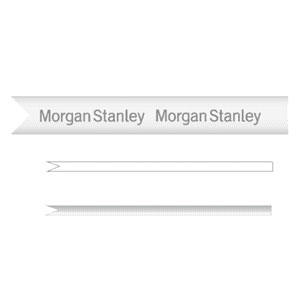 sku: XRIB5Roll Satin Ribbon, 300 feet- (white, 7/8 inch, with white stamped Morgan Stanley logo)